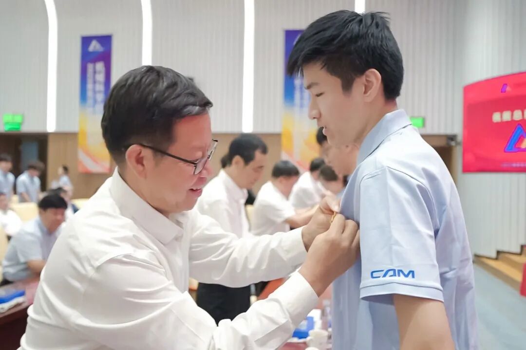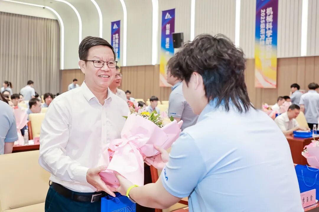 典禮上,王德成、李玉鑫及導(dǎo)師代表共同為新生佩戴總院徽章。這枚徽章不僅象征著中國機(jī)械總院人的身份,更承載著“以提升中國裝備制造水平為己任”的使命與榮光。優(yōu)秀導(dǎo)師獎(jiǎng)、最受歡迎教師獎(jiǎng)、新生入學(xué)獎(jiǎng)學(xué)金和優(yōu)秀課程獎(jiǎng)獲獎(jiǎng)代表上臺(tái)領(lǐng)獎(jiǎng)。新生代表手捧鮮花向?qū)焸儷I(xiàn)上誠摯敬意與節(jié)日祝福,表達(dá)莘莘學(xué)子的感激之情。